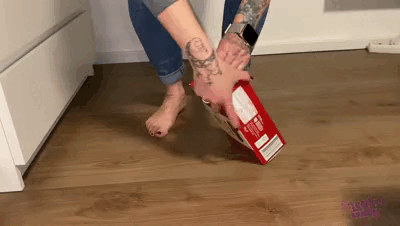 The mistress was at home the whole day. She decided to order some bread from the bakery. When the delivery driver brought the bread, he brought the wrong order, and she requested him to return it and bring her the specific order. He refused, and she decided to punish him for his stubbornness. She took the bread and crushed it with her feet without remorse while he watched helplessly.
