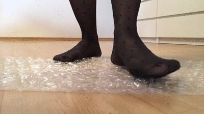 Lady Stefanie found some bubble wrap in her house and she had fun crushing it. She did it with her knees as well as with her feet in socks because she wanted to enjoy it longer than she would have if she used her high heels to do it. She had a great time and by the time she was done, she had killed some time. She was shocked at how much time had passed.