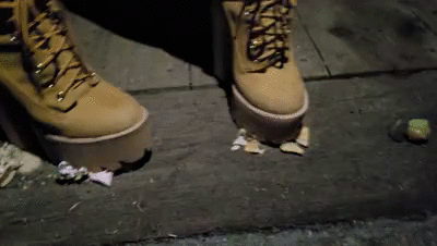 Mistress Penelopa felt like crushing some cake and she did it with her sneakers. She placed it on the floor and she used the sneakers to step on it and to crush it. It was all over her feet but she did not care. When she was done walking around with it, she asked the guy to lick it all from the soles of her feet. He had no choice.