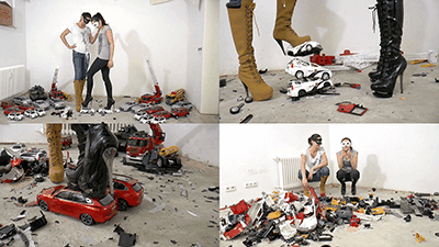 Madame Marissa loves to crush toys. Whenever she buys toys, it does not raise eyebrows and it does not make noise as she crushes them as it would happen if she crushed a slave. Her friend was interested in crush fetish as well so she bought more toys and the mistresses had fun crushing and destroying the toys. They only stopped after all of them had been crushed and destroyed.