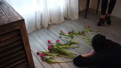 Mistress Elena was brought flowers by her boyfriend and she did not like them. He had messed up and he was trying to get back to her good side but she was not ready to forgive him. He had to earn her forgiveness and she felt he had not done that yet. So she crushed the flowers and sent him away. He was scared and tried to find out what else he could do.
